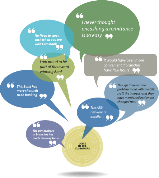 The Bank commissioned an independent research agency to conduct annual research on customer satisfaction covering key customer touch points, customer interaction areas and customer related processes and procedures to achieve the under mentioned objectives.