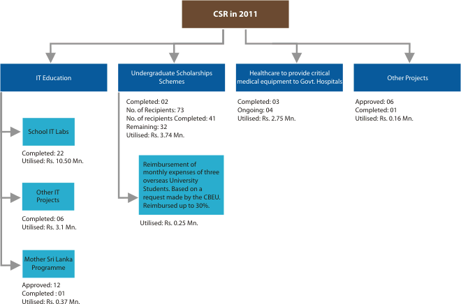 The figure below gives a snapshot of CSR activities completed and under implementation in 2011.